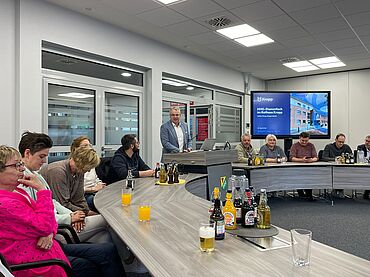 Nach der 90-minütigen Führung fand in der Tischlereiwerkstatt ein gemütlicher Austausch statt – begleitet von Grillwurst und Getränken. Bürgermeister Stefan Ploog informierte über zentrale Themen der Gemeinde, darunter: